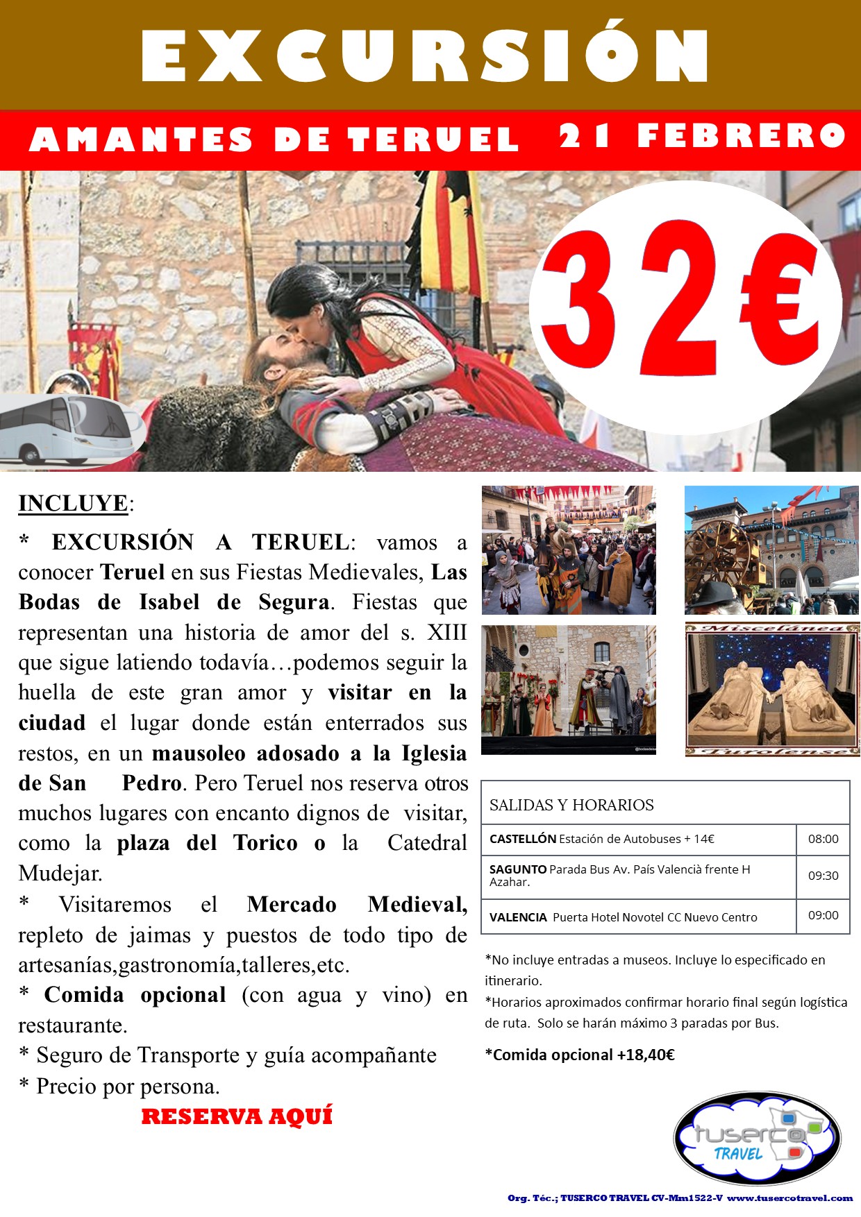 -Excursión a Teruel durante las Fiestas Medievales “Las Bodas de Isabel de Segura”.