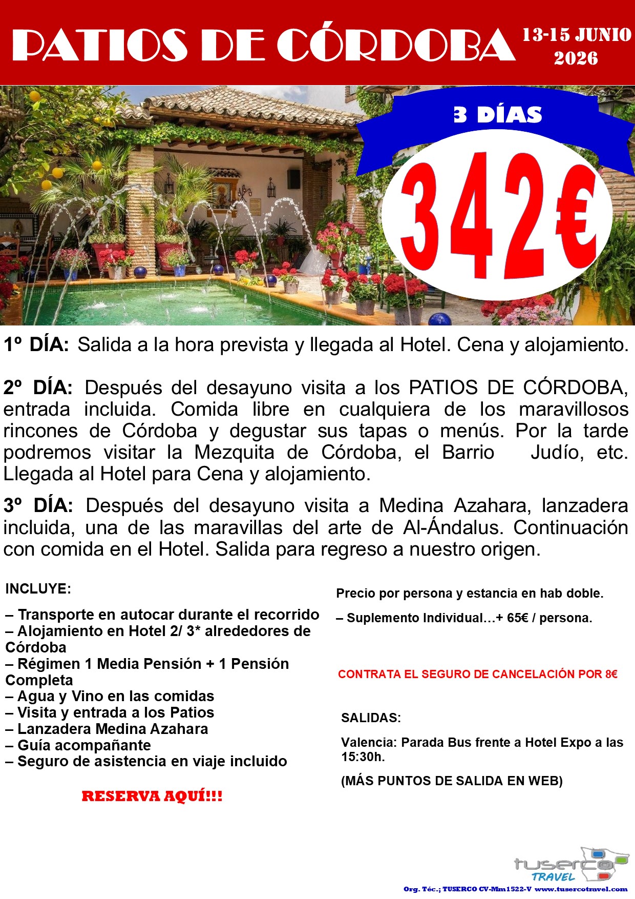 Teníamos reservas hechas y abonadas para el viaje del 13 al 15 de mayo a los Patios de Córdoba.
